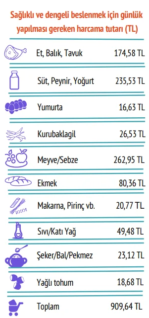 BİSAM, sağlıklı beslenme için gerekli kalori miktarının yaşa ve cinsiyete göre değiştiğini vurguladı. Buna göre aylık gıda maliyeti:
