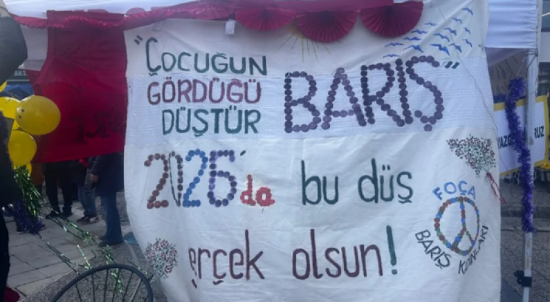 Evrensel'den Gözde Tüzer Korkmaz'ın haberine göre, Foça Barış Kadınları İnisiyatifi, bu yılki yılbaşı etkinliğinde, "Bugün biraz çocuk olacağız. Onlarla birlikte farklı renkler ve dileklerle süslü yeni yıl kartları yapacağız" çağrısıyla bir araya geldiler.