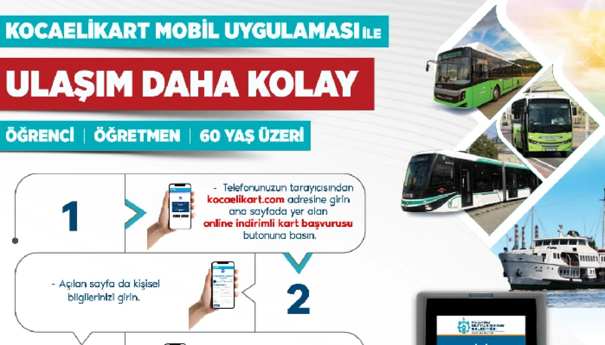 Kocaeli Büyükşehir, toplu ulaşım hizmetlerine yenisini ekleyerek öğrenci, öğretmen ve 60 yaşa büyük kolaylık sağlayacak "Online Kart" uygulaması başlattı.